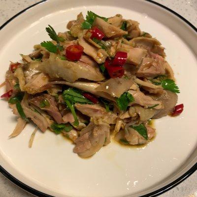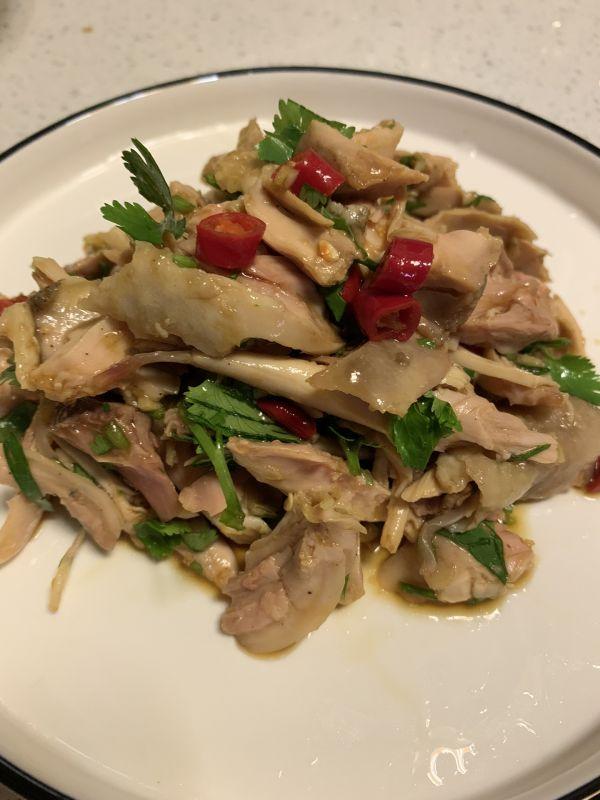 用料大鸡腿 1个葱姜 少许料酒 1勺香菜 1根小米辣 2个蒜 2瓣盐 适量糖 适量生抽 1-2勺陈醋 半勺鸡精 适量香油 适量做法步骤