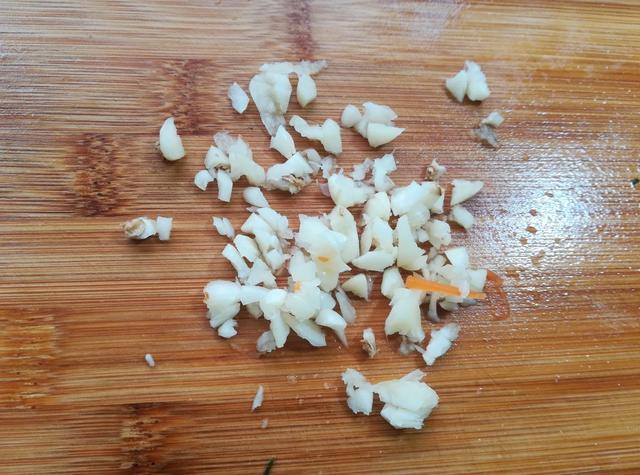 5、 大蒜剥皮,用刀拍碎切成蒜泥以备用。