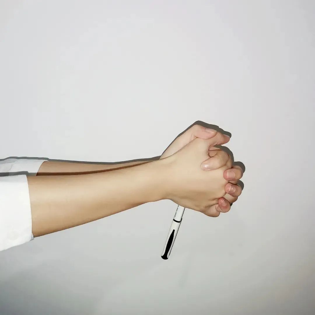这个动作在调节中经常用,用手滚动笔,前臂保持在中立位,小指如果能够张开就能促进拇指外展。