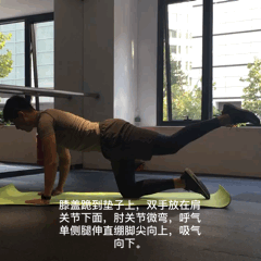 跟着图片的训练动作,在家一张瑜伽垫即可开始训练,根据自身实际情况,将其中的动作每个动作做3-4组进行训练即可。