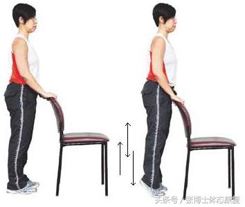 6、稳定身体站在桌子或者椅子旁边,保持平衡;当踮起脚尖将身体上抬时盆底肌收缩5秒,放下身体时盆底肌放松;该动作重复10次。