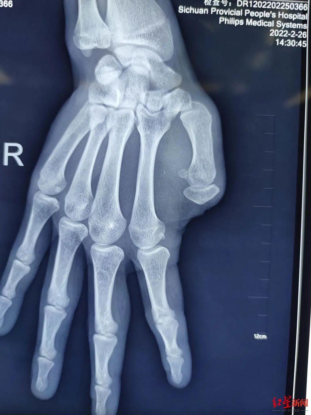 “大拇指,又叫做手指,拥有整个手掌50%的功能。”四川省人民医院骨科主治医师肖成伟解释说,大拇指是各个手指中功能复杂、重要的一个手指头。从大拇指根部到掌跟,有一块大鱼际肌。通过这块肌肉支配大拇指,人就可以完成对掌、对指的功能,从而完成强力抓握、举重,以及手指尖的精细抓握,比如写字、画画。缺失大拇指,对生活影响大。
