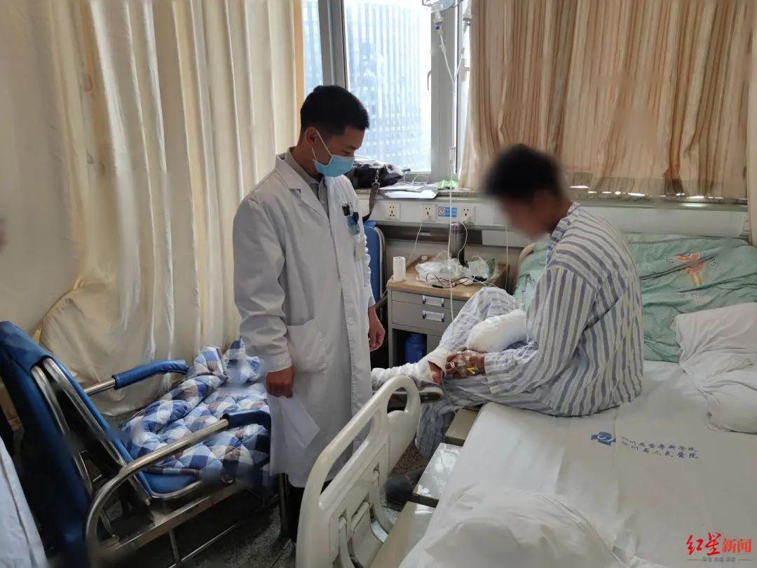 一周前,四川省人民医院骨科医生将他右脚大拇趾,移植到右手大拇指位置,弥补了他15年前丢失的大拇指。