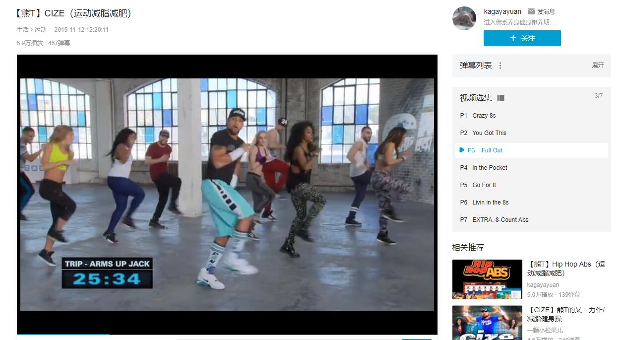5.熊T:CIZE同样是来自大神熊T的课程,但这套操相对于insanity的强度来说要小很多,也更加简单。