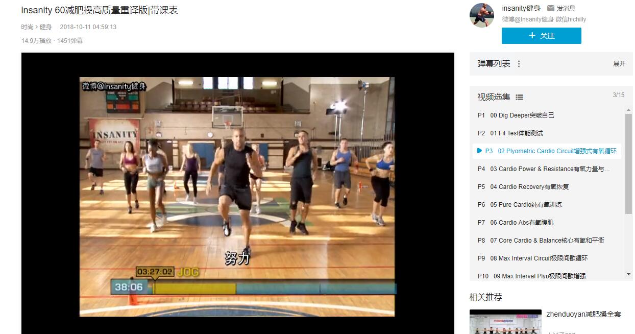 insanity的名声很大,果显著,跟着课程训练下来减下十斤不是问题。但问题是,这套健身操的训练强度同样也很高,很累很累!建议体力好运动细胞强的朋友选择。