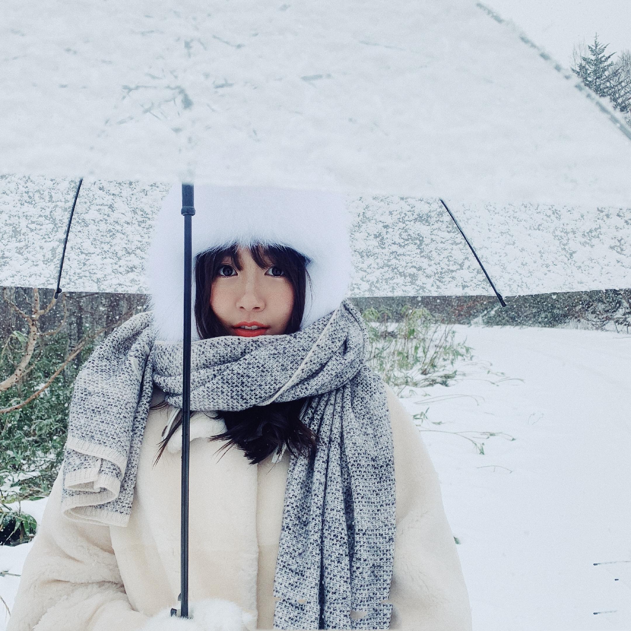 米白色羊羔毛外套搭配温暖的灰色围巾,再戴个可爱的白色毛毛帽,颜色搭配清新又柔和,衬托肤色。特别是拍起照片,更是显得又甜又暖,减龄果更是满分,说她16岁也不会让人感觉有违和感啊!