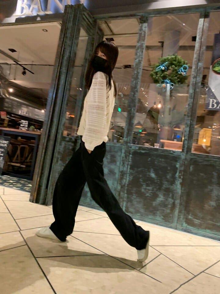 经典黑色阔腿裤搭配镂空白上衣,经典黑白搭配但是却很实用。简单却很实用的单品,轻松就能穿出高级范。