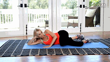 侧卧在瑜伽垫上,右侧大腿垂直身体,脚尖略朝下臀部外侧发力抬起右腿抬腿时大腿向胯的方向缩,而不是向远处伸抬腿时呼气,下放时吸气