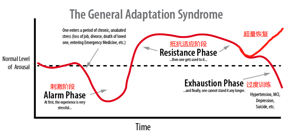 渐进超负荷更多的是一种理论,根据加拿大内分泌学家Hans Seyle提出的刺激-恢复-适应模型而得出,指的是身体只有不断的受到外界的刺激,才会慢慢产生一定的适应性,身体才会不断的变得强壮起来。训练需要有足够的训练容量与强度,以引起超负荷,从而导致疲劳。这样才会引发超量补偿,这是一个身体积极适应的过程。无论我们增肌还是减脂,实际上都是对身体产生一种压力,迫使身体去适应当下的状态。但同时,不能过度训练,当负荷过大时,导致运动能力跟不上训练计划,必然会出现伤病等一系列问题。