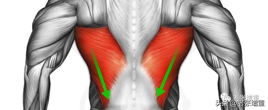 2.背部训练动作—引体向上/高位下拉第2个是练后背的一个动作,那后背的肌群所涉及到的肌肉其实挺多的,我们主要关注背阔肌就可以了,背阔肌是背部肌肉当中面积大的一块肌肉,想增重的话,抓住这块肌肉使劲练,能够让你起到事半功倍的果。