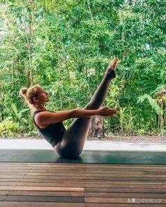 双手掌心相对,慢慢伸直小腿向上腹部靠向大腿,背部立直,稳定05