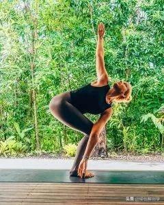 解开双手,左手伸直向下找地面右手臂上举,呼气加深扭转保持5-8个呼吸,换反侧练习07