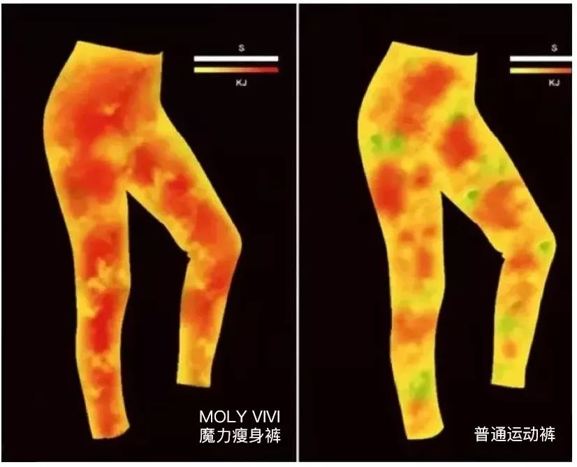 这种瘦腿裤,即使是平时穿着也是有着燃脂果的,用专业仪器测量可以发现,魔力裤的燃脂果的,红色区域都是代表在燃脂,而且色彩越深则是燃脂果越强烈。