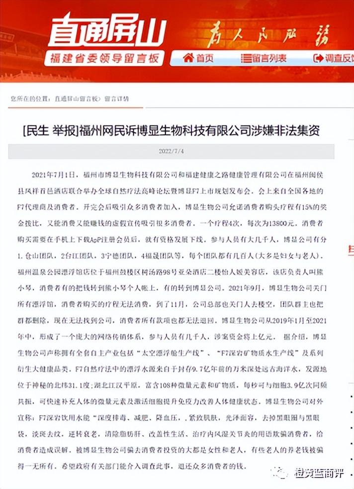 7月4日,本网在“直通屏山留言板”注意到一则投诉,其标题为《[民生举报]福州网民诉博显生物科技有限公司涉嫌非法集资》。